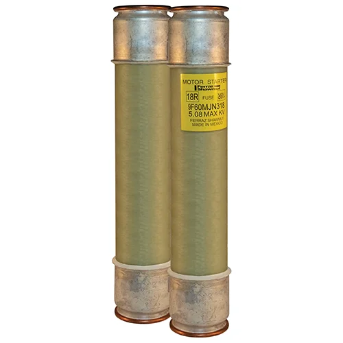 Mersen R-Rated fuses are current-limiting, high interrupting rating fuses intended for the short circuit protection of medium voltage motors and motor controllers. R-Rated fuses are back-up fuses that have a minimum interrupting rating, and must be coordinated with overload relays in combination motor starters. The motor starter manufacturer generally specifies the R-Rated fuse size. These fuses come with a 3 (size D) or 4 (size E) inch diameter barrels with ferrules and are mounted in spring reinforced clips
