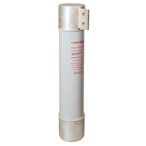 Mersen R-Rated fuses are current-limiting, high interrupting rating fuses intended for the short circuit protection of medium voltage motors and motor controllers. R-Rated fuses are back-up fuses that have a minimum interrupting rating, and must be coordinated with overload relays in combination motor starters. The motor starter manufacturer generally specifies the R-Rated fuse size. These fuses come with a 3 (size D) or 4 (size E) inch diameter barrels with ferrules and are mounted in spring reinforced clips
