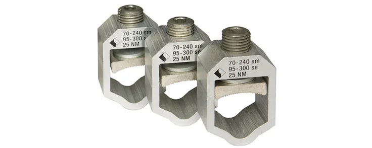 | Design Details | V-terminal clamp size 1,2,3, 95-300 mm² single solid, 70-240 mm² single stranded, 50-185 mm² round stranded, 70-240 mm² round solid, Opening width: 26.5 mm M = 23 -27 Nm 1 set = 3 pieces |