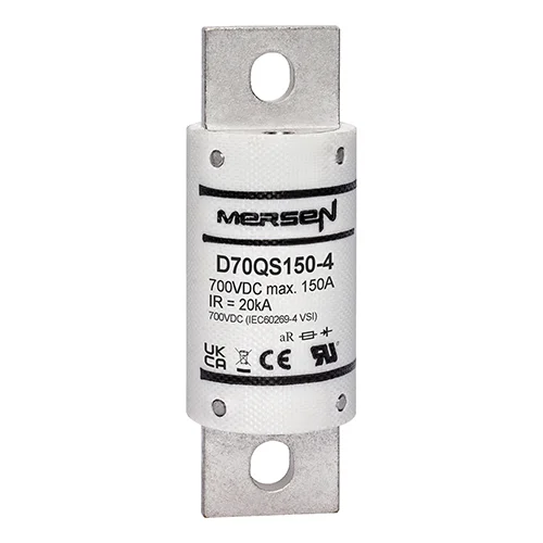 Electrification in construction, marine, agriculture, manufacturing, mining, and other industries, in addition to transportation, is a critical trend in cleaner energy. The D70QS North American style round body high-speed fuse series is Mersen’s next evolution for high-power conversion applications protection for those industries shifting to Direct Current(DC) systems today. The D70QS fuse series is specifically designed to reduce the I²t, peak let-through current, and arc voltages during fault conditions to protect applications such as battery charging systems and other DC components like relays and contactors.