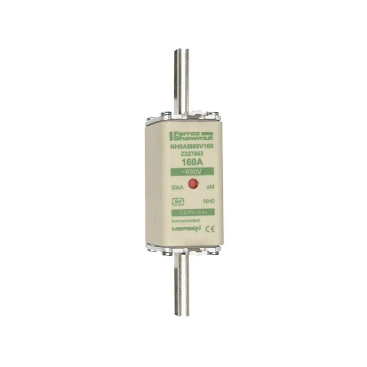 DIN NH Standard fuse-link aM Size NH0 690VAC 160A live tags Double indicator Body width 30 mm