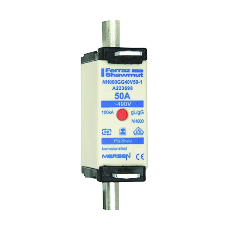| Description | DIN NH Standard fuse-link gG Size NH000 400VAC 50A isolated tags Double indicator Body width 21mm |