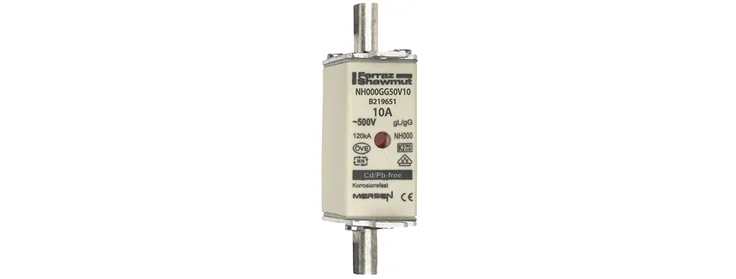 | Description | DIN NH Standard fuse-link gG Size NH000 500VAC 250VDC 10A live tags Double indicator Body width 21mm |