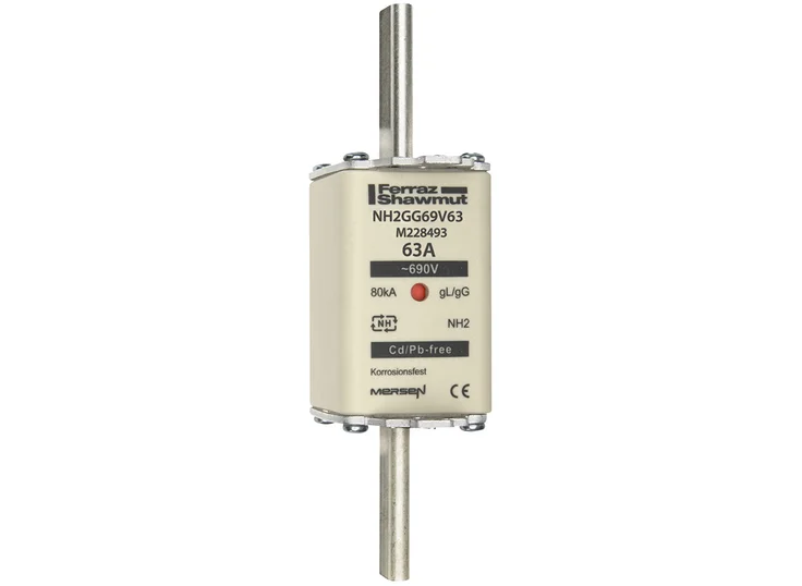 | Description | DIN NH Standard fuse-link gG Size NH2 690VAC 250VDC 63A live tags Double indicator Body width 40 mm |