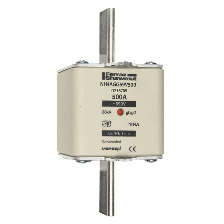 | Description | DIN NH Standard fuse-link gG Size NH4a 690VAC 250VDC 500A live tags Center indicator Body width 100 mm |