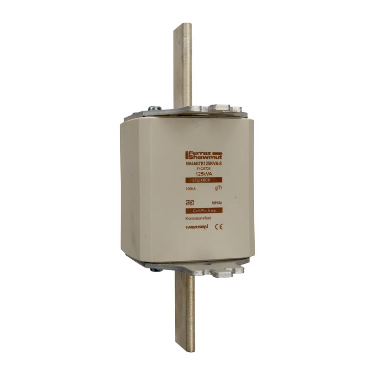| Description | DIN NH Standard fuse-link gTr Size NH4a 400VAC 180A 125KVA live tags Top indicator Body width 72.9 mm |