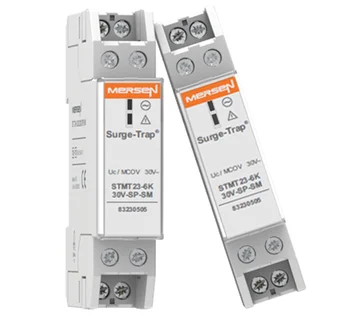 Surge-Trap® Modular Surge Protective Device (SPD) is a no-fuse, fail-safe surge suppressor featuring Mersen’s patented TPMOV® technology inside. UL 1449 5th Edition approved, it is DIN-rail mountable featuring a fail-safe self-protected design, visual indicator, and a small footprint.