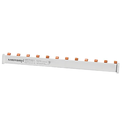 Mersen USBB UltraSafe bus bar systems are intended for use with UltraSafe Class CC (USCC) and Midget (USM) fuse holders. The USBB delivers safe and reliable combination of circuits in a compact design. Bus bar systems reduce installation time when compared to wire solutions, offer space savings and deliver touch-safe, shock resistant solutions to panel builders and designers. 1-, 2-, and 3-phase designs available.