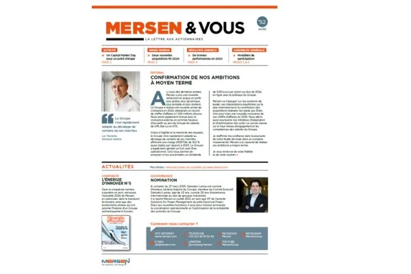Votre portefeuille d’actions est géré par votre intermédiaire financier qui est responsable de sa gestion. Vos actions sont cependant enregistrées dans les registres de Mersen, ce qui nous permet d’être en contact direct avec vous.