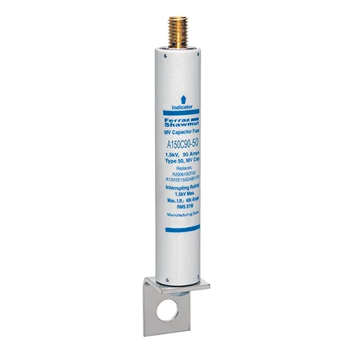 Fusible protection de condensateur moyenne tension 1500VAC 90A Plot taraudé à couteau décentré Indicateur visuel Amp-Trap®