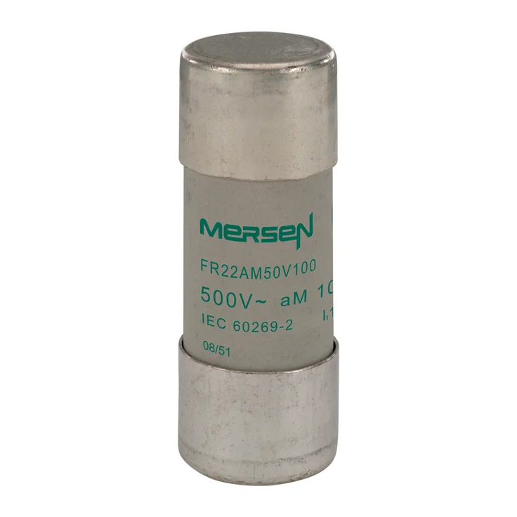 Les fusibles aM et gG de Mersen couvrent une large gamme comprenant de multiples tailles et ampérages pour les tensions 400, 500 et 690VAC pour la protection des circuits de distribution électrique et autres applications industrielles. La plupart des calibres sont disponibles dans les tailles 8x31 et 10x38 avec une version avec ou sans indicateur, et dans les tailles 14x51 et 22x58 avec une version avec ou sans percuteur permettant d'activer un micro-contact auxiliaire. La taille 10x38 est aussi disponible en version à percuteur. Tous les fusibles cylindriques ont un corps céramique et des contacts argentés. Les fusibles cylindriques de type "aM" sont des fusibles à zone de coupure partielle. Par leur pouvoir limitant, ils protègent les équipements électriques même lors de très grands courant de défaut. Ils coupent des courants supérieurs à 6,3xIn jusqu'à des courants de court-circuits élevés (pouvoir de coupure). Les fusibles cylindriques aM sont principalement utilisés pour la protection des circuits moteurs. Toute notre technologie et tous nos processus sont définis de manière à assurer la meilleure performance technique.