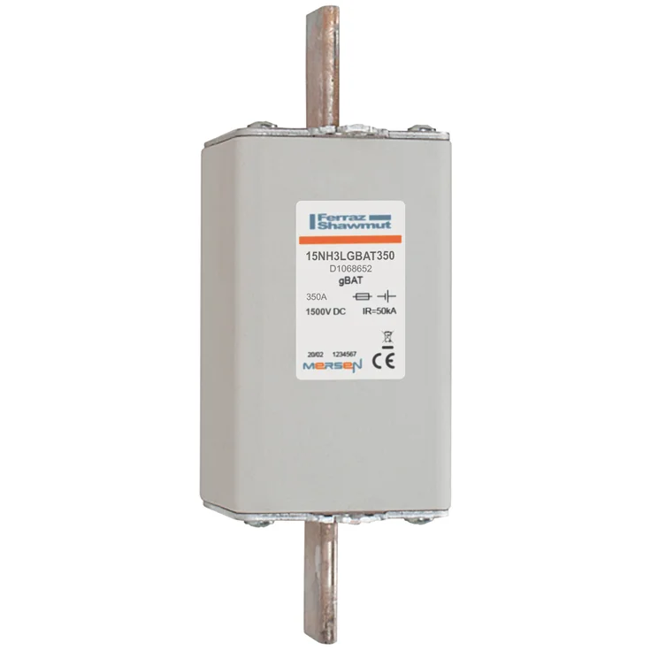 La série de fusibles NH gBat de Mersen a été conçue spécialement pour la protection des systèmes de batteries. Ils offrent une protection intégrale qui peut concerner des surintensités très faibles ou des courants de défaut de type DC jusqu'à 50 kA. La série de fusibles NH gBat couvre différentes valeurs nominales en 1000 VDC avec les tailles NH1 et NH2 et en 1500 VDC avec les tailles NH1XL, NH2XL et NH3L. Ils sont de type gBat, conformes au nouveau projet de norme IEC 60269-7 pour la protection des batteries. Ils sont proposés avec des couteaux boulonnés pour un montage direct ou avec couteaux pleins.
