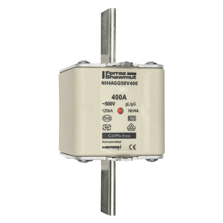 | Description | Cartouche fusible standard DIN NH gG Taille NH4a 500VAC 250VDC 400A pattes non isolées Indicateur central Largeur du corps 100 mm |