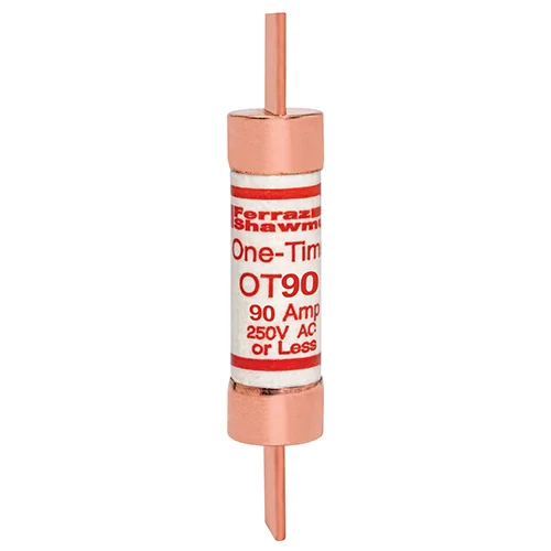 Les fusibles d'usage général OT, OTN et OTS assurent une protection, à un coût économique, des circuits d'alimentation et de dérivation tels que l'éclairage, le chauffage, et autres charges non motorisées. Les fusibles OT, OTN et OTS limiteront, en toute sécurité, tous les courants de court-circuit jusqu'à 50,000 ampères, et ne possèdent pas de système de réjection. Il faudra prendre soin de ne pas les remplacer par des fusibles de calibres inférieurs. Les fusibles OTN15 à 60 sont conformes aux normes du code Canadien pour les fusibles de Type'P' à bas point de fusion et sans temporisation.
